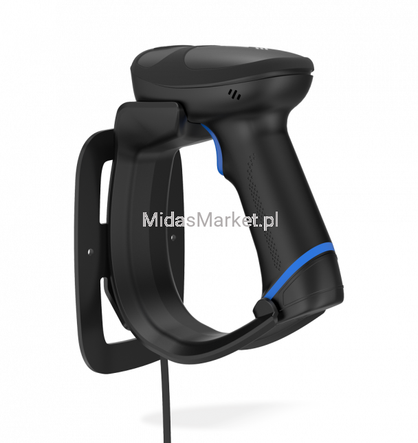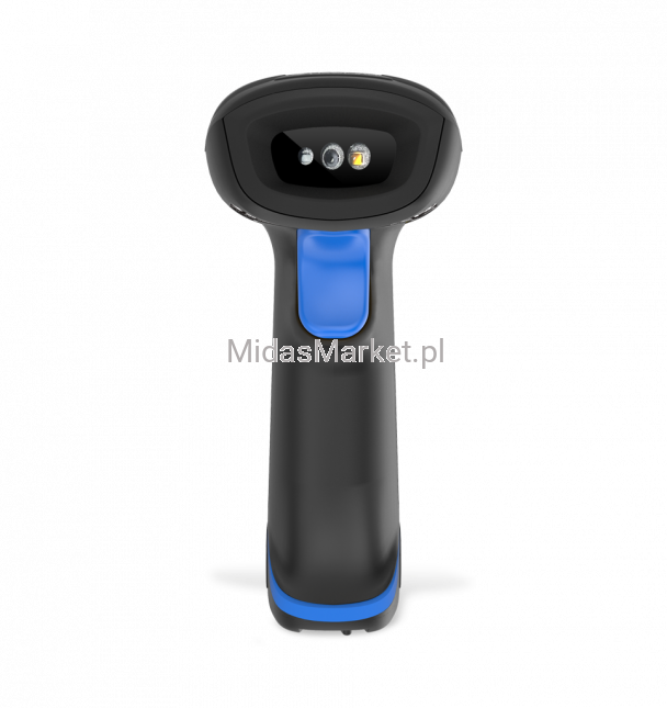 Czytnik kodów kreskowych 1D oraz 2D, bezprzewodowy, w zestawie stacja dokująca i kabel USB.