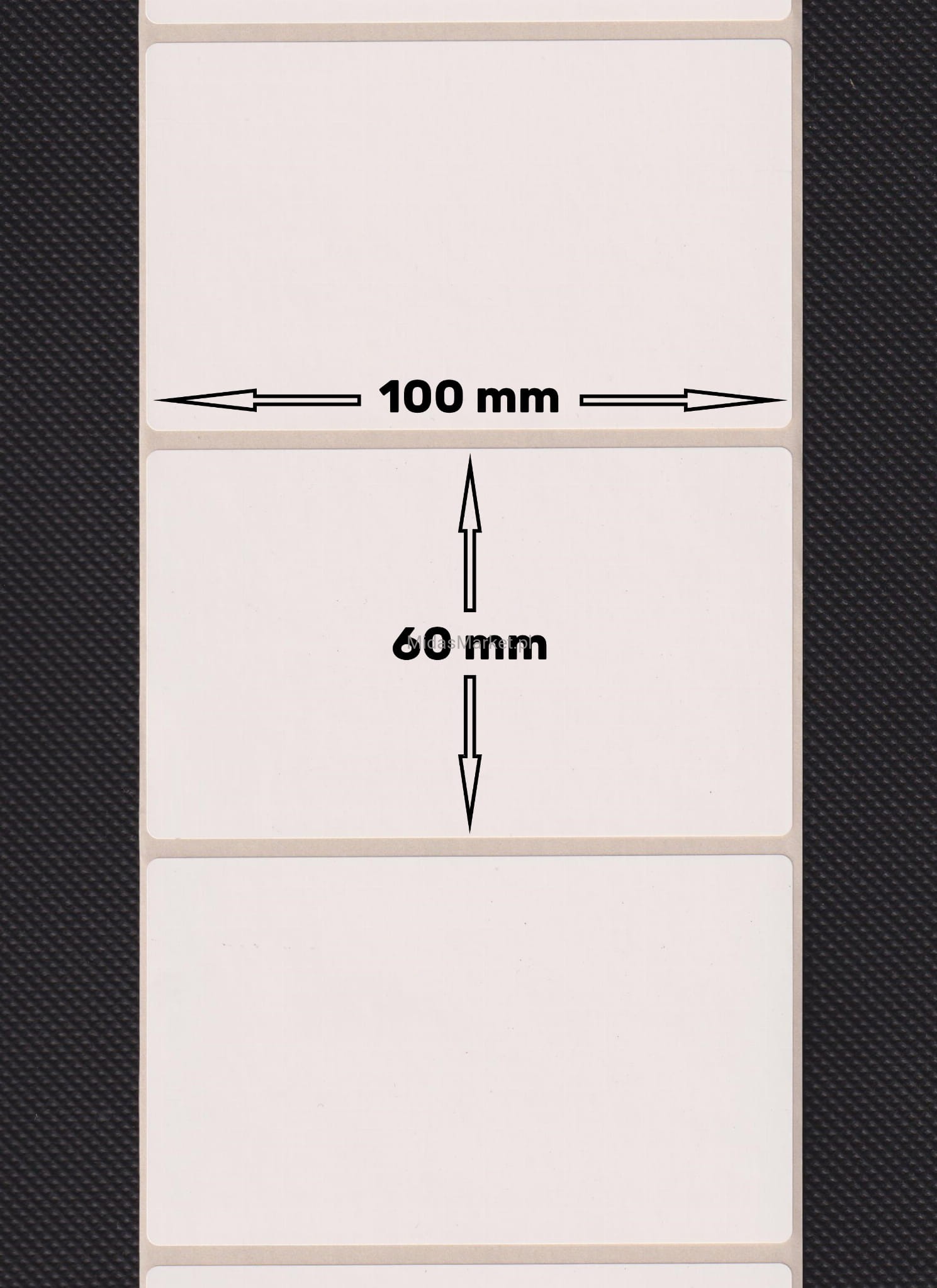 ■ Etykiety termiczne, białe 100mm (szerokość) x60mm (długość) po 1000 szt. na rolce. Nawijane na plastikowej rolce/gilzie o średnicy 25 mm, mogą być stosowane m.in. w drukarkach ZEBRA LP2844, TLP2844, GK420d, GK420t, GX420d, GX420t, GX430t, ZD220d, ZD220t, ZD420d, ZD420t, ZD620d, ZD620t.... i innych