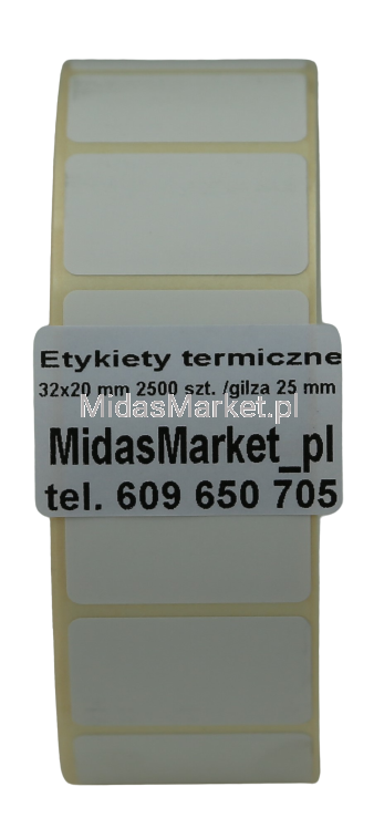Etykiety termiczne, białe 32mm (szerokość) x 20mm (długość) po 2500 szt. na rolce do drukarek etykiet / kodów kreskowych. Nawijane na rolce/gilzie o średnicy 25 mm, do zastosowania w drukarkach termicznych oraz termotransferowych m.in. ZEBRA LP2844, TLP2844, GK420d, GK420t, GX420d, GX420t, GX430t, ZD220d, ZD220t, ZD420d, ZD420t, ZD620d, ZD620t.... i innych