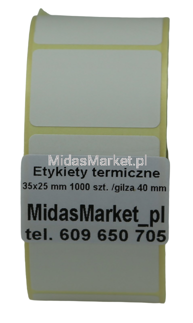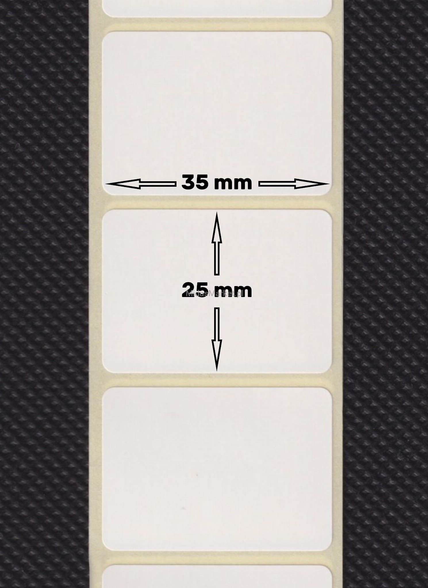 Etykiety termiczne, białe 35mm (szerokość) x 25mm (długość) po 1000 szt. na rolce do drukarek etykiet / kodów kreskowych oraz do wag. Nawijane na rolce/gilzie o średnicy 40 mm, do zastosowania w drukarkach termicznych oraz termotransferowych m.in. ZEBRA LP2844, TLP2844, GK420d, GK420t, GX420d, GX420t, GX430t, ZD220d, ZD220t, ZD420d, ZD420t, ZD620d, ZD620t.... i innych