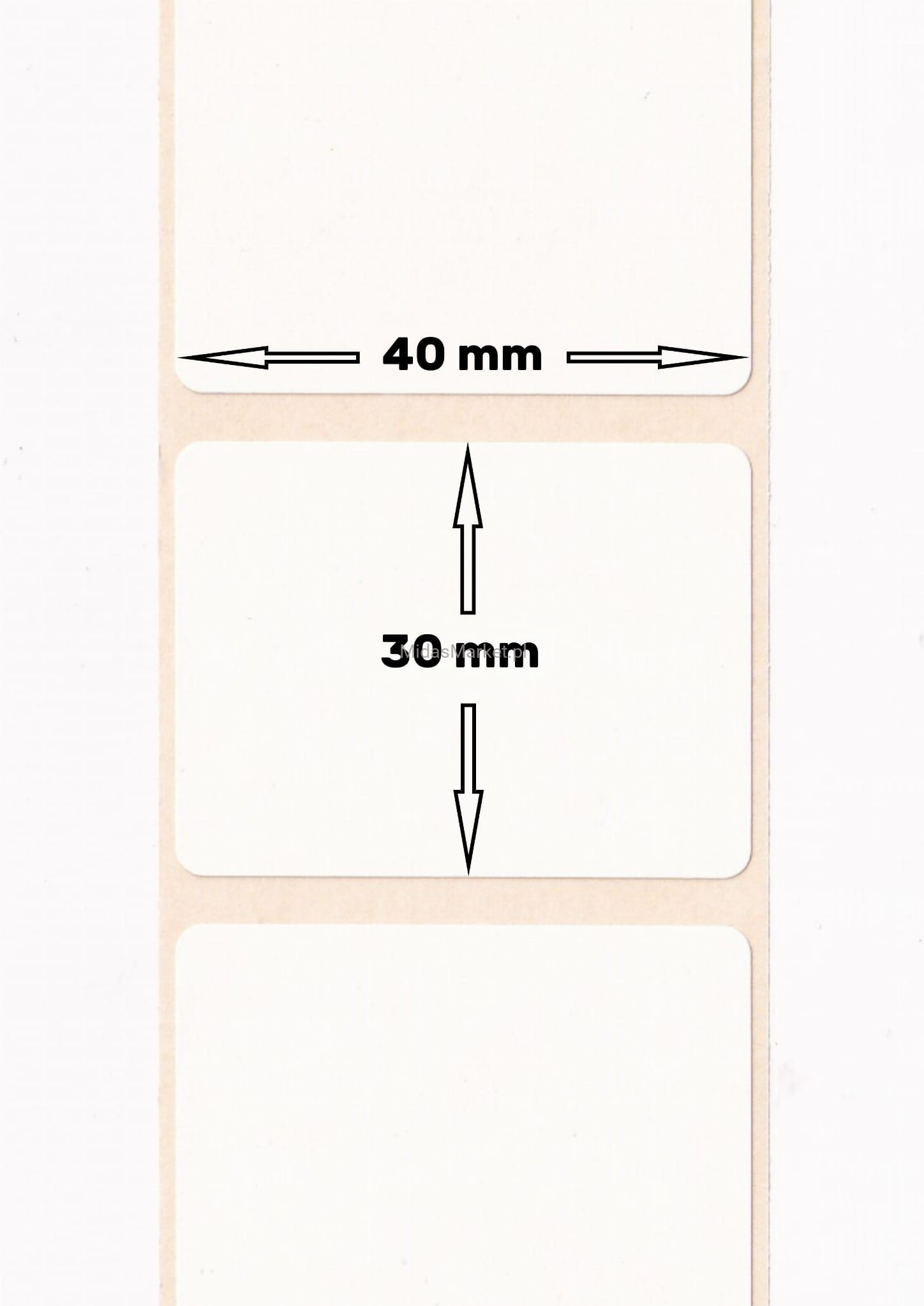 Etykiety termiczne, białe 40mm (szerokość) x 30mm (długość) po 1000 szt. na rolce do drukarek etykiet / kodów kreskowych. Nawijane na rolce/gilzie o średnicy 25 mm, do zastosowania w drukarkach termicznych oraz termotransferowych m.in. ZEBRA LP2844, TLP2844, GK420d, GK420t, GX420d, GX420t, GX430t, ZD220d, ZD220t, ZD420d, ZD420t, ZD620d, ZD620t.... i innych
