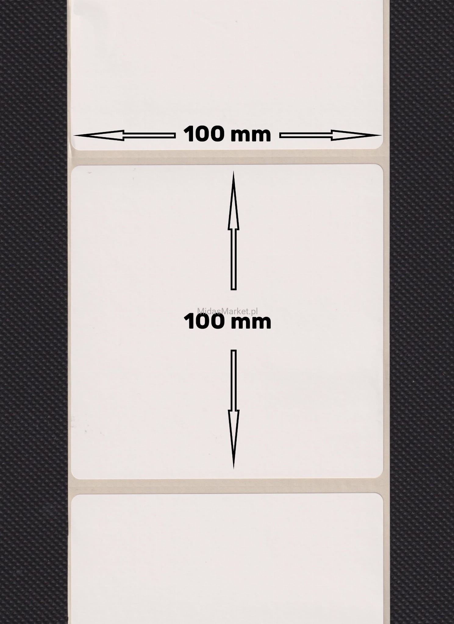 ■ Etykiety termotransferowe, białe 100mm (szerokość) x100mm (długość) po 500 szt. na rolce z PERFORACJĄ między etykietami (ułatwiającą odrywanie) do drukarek etykiet / kodów kreskowych. Nawijane na rolce/gilzie dobrej jakości o średnicy 25mm, mogą być stosowane m.in. w drukarkach ZEBRA TLP2844, GK420t, GX420t, GX430t, ZD220t, ZD420t, ZD620t.... i innych