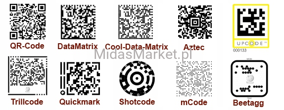 - Obsługiwane kody kreskowe: 1D, 2D, PdF417, Postal (pocztowe), GS1 Databar