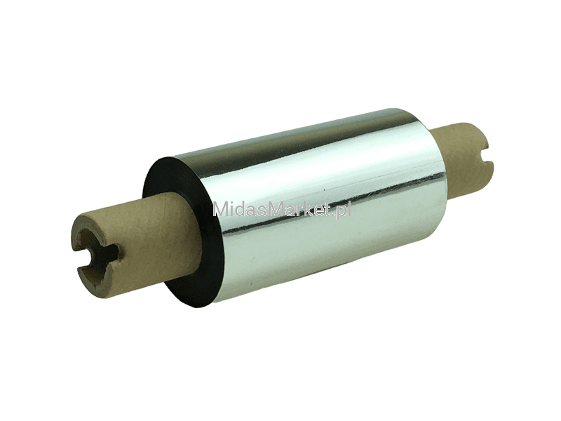 Czarna taśma TTR (Thermal Transfer Ribbon)/kalka/folia termotransferowa ŻYWICZNA o szerokości 64mm i długości 74mb nawinięta na gilzę/rolkę o średnicy 1/2" (13mm) i długości 110mm.