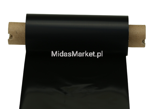 Czarna taśma TTR (Thermal Transfer Ribbon)/kalka/folia termotransferowa ŻYWICZNA o szerokości 80mm i długości 74mb nawinięta na gilzę/rolkę o średnicy 1/2" (13mm) i długości 110mm.