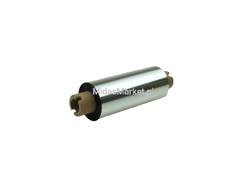 Czarna taśma TTR (Thermal Transfer Ribbon)/kalka/folia termotransferowa ŻYWICZNA o szerokości 80mm i długości 74mb nawinięta na gilzę/rolkę o średnicy 1/2" (13mm) i długości 110mm.